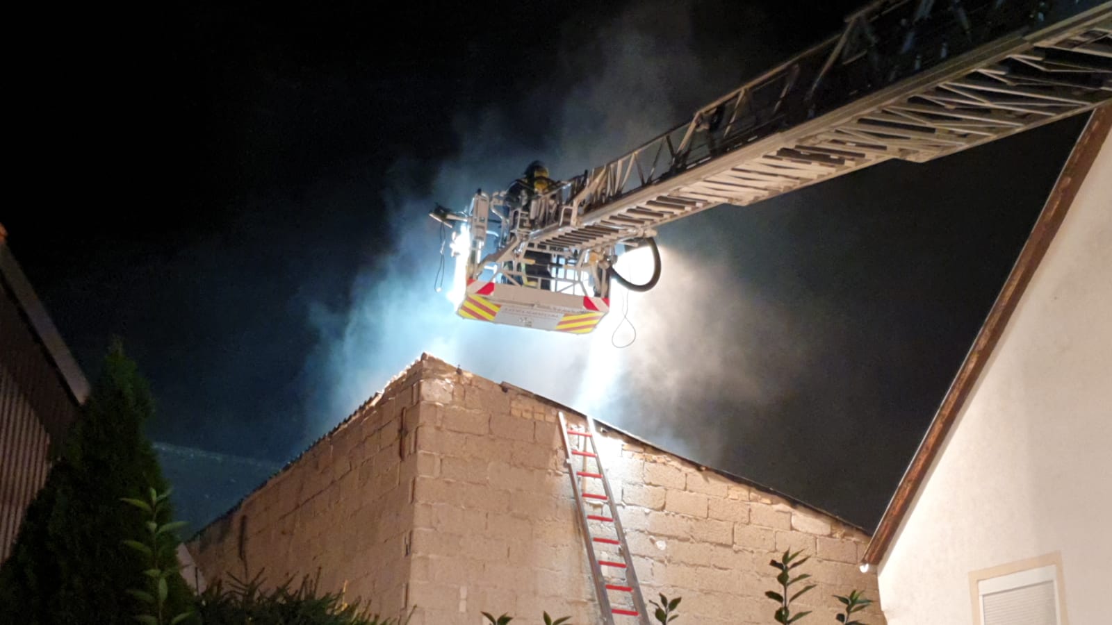 Während des Einsatzes wurde besonders Augenmerk auf den Schutz des angrenzenden Wohngebäudes gelegt.
