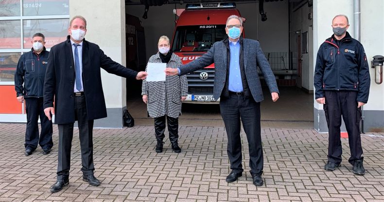 Mainz/Bingen (sm)- Staatssekretär Randolf Stich vom rheinland-pfälzischen Innenministerium war eigens ins Feuerwehrgerätehaus Nierstein-Oppenheim gekommen, um Bürgermeister Klaus Penzer den Förderbescheid zum Erwerb eines Tanklöschfahrzeuges, TLF 4000, zu überreichen.