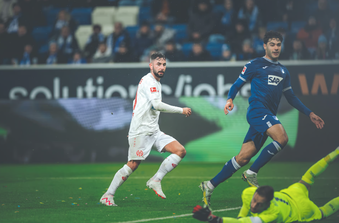 MAINZ (jk)– Trotz teilweise drückender Überlegenheit und klarster Chancen – darunter ein verschossener Elfmeter Aymen Barkoks – ist der 1. FSV Mainz 05 zum Abschluss des zwölften Bundesliga-Spieltags am Sonntagabend bei der TSG 1899 Hoffenheim nicht über ein 1:1 (1:0) hinausgekommen. Die 05-Führung aus Durchgang eins, erzielt durch den überzeugenden Marco Richter, egalisierten die Gastgeber kurz nach Wiederbeginn. Weitere Lichtblicke neben einem über weite Strecken ganz starken Auswärtsauftritt waren aus FSV-Sicht die Comebacks von Jonny Burkardt und Kapitän Silvan Widmer, die in dieser Saison zuvor noch keine Einsatzminute hatten absolvieren können.