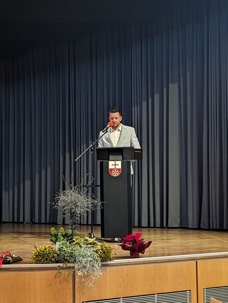 Stadtbürgermeister Dirk Hasenfuss hieß die Gäste aufs Herzlichste willkommen: „Wir freuen uns sehr, Ihnen wieder ein schönes vorweihnachtliches Programm bieten zu können. Wir möchten Ihnen ein paar heitere und besinnliche Stunden schenken“, sagte Hasenfuss und bedankte sich bei all den engagierten Mitwirkenden, die diesen Nachmittag auf und hinter der Bühne mitgestalteten. Hans-Jürgen Straub, 1. Beigeordneter der Stadt, führte im Anschluss gemeinsam mit dem Bürgermeister durchs Programm.