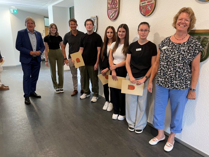 ALZEY (jk)- Bei einer Feierstunde im Sitzungssaal der Kreisverwaltung begrüßte Landrat Heiko Sippel vier Auszubildende, beglückwünschte drei Mitarbeiter zu ihren Dienstjubiläen und sprach Worte des Danks anlässlich zweier Verabschiedungen.