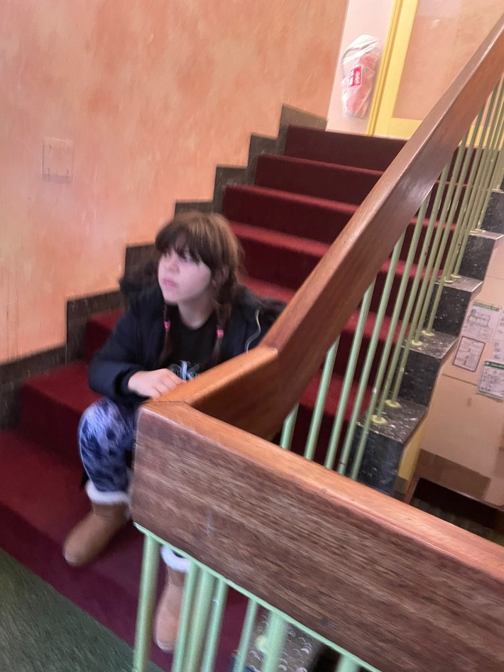 Esmike A. (13 Jahre): schwarze Haare, vermutlich mit schwarzer Mütze, grauer Jogginghose und schwarzer Jacke bekleidet, spricht Ungarisch