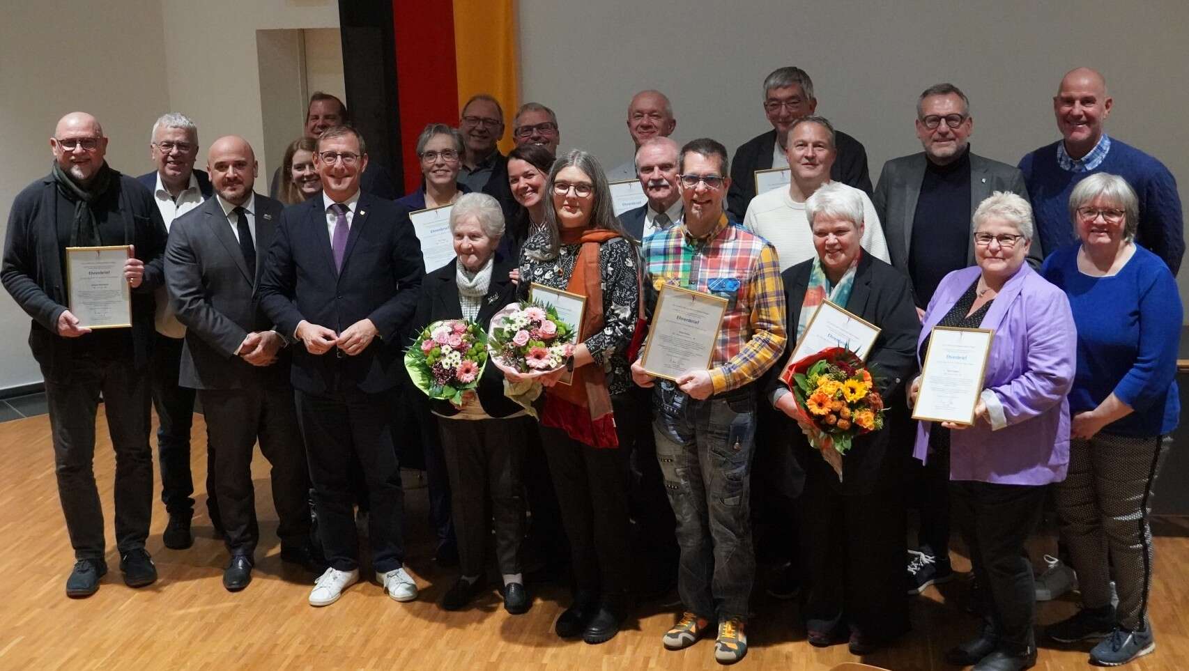 MAINZ-BINGEN (jk)– In einer Feierstunde im Kreistagssaal hat Landrat Thomas Barth als Vorsitzender der Stiftung „Kultur im Landkreis“ zwölf engagierte Persönlichkeiten mit dem Ehrenbrief ausgezeichnet. Damit würdigte der Landkreis den langjährigen und vielfältigen Einsatz der Geehrten für das kulturelle Leben in der Region. Die Auszeichnung ist jeweils mit 250 Euro dotiert.