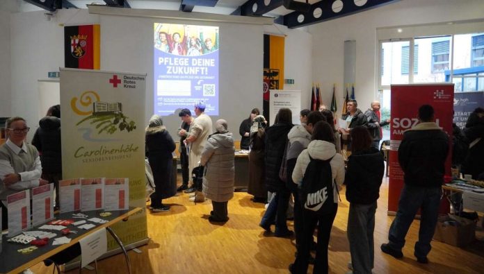 MAINZ-BINGEN (k)- Eine berufliche Zukunft im Gesundheitswesen? Für viele Menschen eine attraktive und sinnstiftende Perspektive – das zeigte die diesjährige Pflege- und Gesundheitsmesse „Pflege Deine Zukunft“, zu der der Landkreis Mainz-Bingen eingeladen hatte. Rund 200 Arbeitssuchende nutzten die Gelegenheit, im Ingelheimer Kreistagssaal mit 13 regionalen Unternehmen aus Pflege und Gesundheitsversorgung in Kontakt zu treten, berufliche Möglichkeiten kennenzulernen und sich über Ausbildungs- und Arbeitsplätze zu informieren.