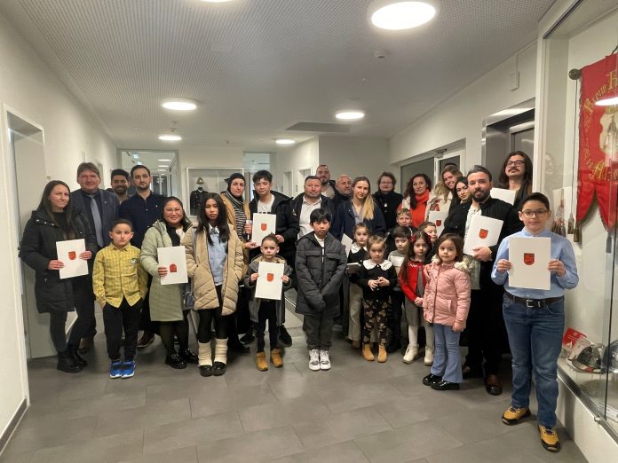 ALZEY (bs/az-wo) – Mit einer feierlichen Zeremonie, die diesmal im Saal der Feuerwache in Alzey stattfand, hat Landrat Heiko Sippel 59 neue Staatsbürgerinnen und Staatsbürger aus 23 Herkunftsländern im Alter zwischen nur neun Monaten und 76 Jahren im Landkreis Alzey-Worms offiziell willkommen geheißen. Nachdem die Frauen, Männer und Kinder sich feierlich zum Grundgesetz der Bundesrepublik Deutschland bekannt hatten, überreichte der Kreischef die Einbürgerungsurkunden. Gemeinsam wurde dann die Nationalhymne angestimmt.